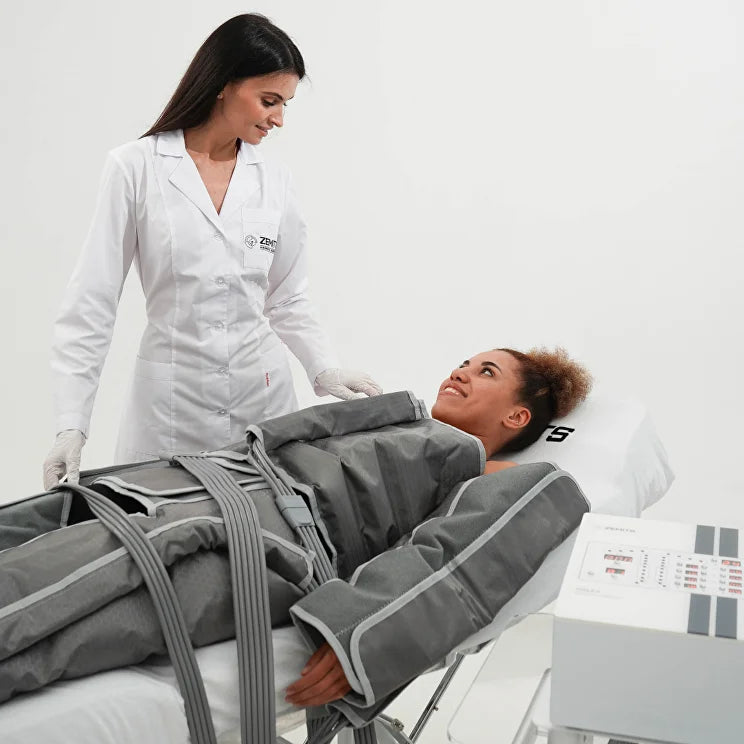 Pressotherapy lymphatic massage is a non-invasive treatment that uses a special machine to apply rhythmic air pressure to the body. it promotes lymphatic drainage and circulation by using a suit with inflatable chambers that compress and decompress to move waste and fluid out of the body. This can help reduce swelling , detoxify the body and improve skin tone.